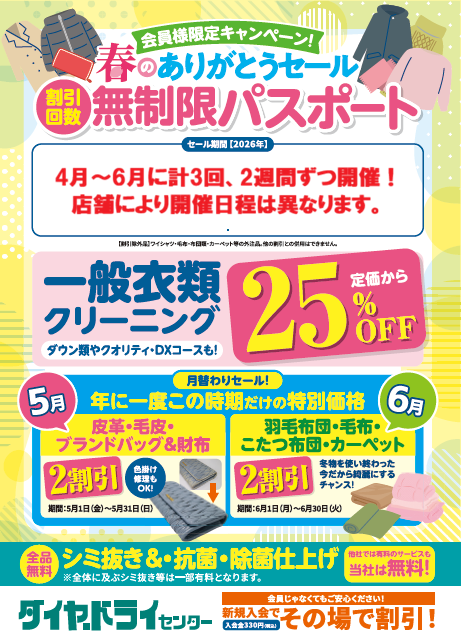 お誕生日月・クリ―ニング全品30%引き